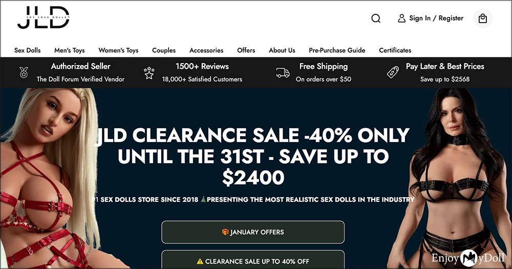 EnjoyMyDoll is a 100% reliable love doll vendor that started its business since 2023. It has got authorization from many popular sex doll brands like Dolls CastleIrontech Doll, Doll4ever, Irokebijin, Climax Doll, Piper Doll, Elsa Babe,  Silicone StarsLusandy Doll, AiBei, Rifrano,  and so forth. As long as you see the brand name on EnjoyMyDoll, you can buy the 100% official love dolls from the target brand without worries.