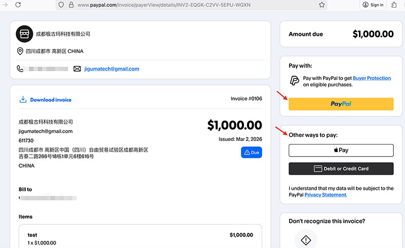 1. Request a direct payment link. If you want the invoice payment link, we will need your email address. This way, you can choose to pay with PayPal account or not.